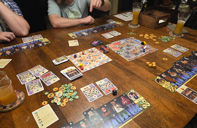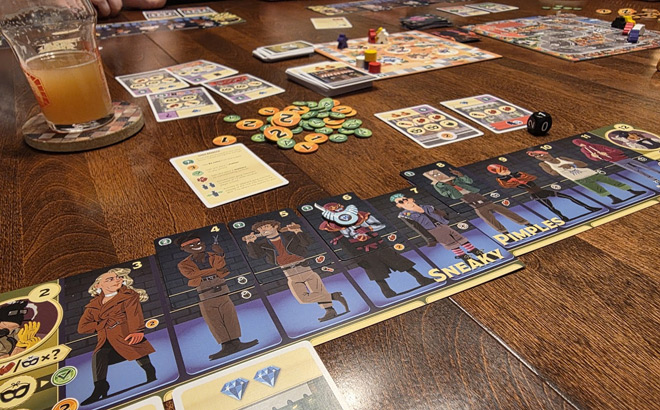 Each card slot expands your engine, letting you turn simple rolls into bigger and bigger payouts. Watching your crew evolve from pickpockets to full-on getaway specialists is hilarious. And the cartoon-style art gives the whole game a cheeky, Saturday-morning-villain vibe.
