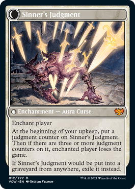 This is certainly a unique effect. Conceptually, it’s also kind of funny that despite being described as a judge, you don’t seem to have to have an actual trial for this guy to attack – just time passing. Regardless, he is potentially the kind of threat that your opponent simply won’t be able to deal with, because he uses too many different ways to attack. That’s with the caveat that assumes he has time to do so: his disturb cost is so high that sacrificing him early won’t accelerate the curse victory in any significant way, and there are a limited number of ways to reduce that cost. I feel like most white decks in constructed will want something that has more options – as in, capable of either attacking or blocking early – but if there’s some kind of prison deck out there, he’d be worth trying in that. An early 4/4 blocker will hold off a lot of things, and some decks simply can’t get out from under the Sinner’s Judgment side.