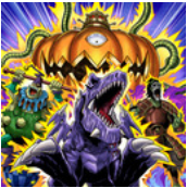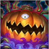 Oh, wow, it’s Pumpking the King of Ghosts! In the…flesh? What are you doing here? This is kind of like the place you battled Red-Eyes Black Dragon, all those years ago. You’re the original Halloween Horrorshow!