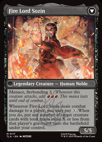 My impression is that Sozin is probably one of the main antagonists of the series, and this is certainly quite the antagonistic card we have. Part board wipe, part Cranial Extraction, part threat…there’s a lot going on, and I do think it’s a promising card in its own right, so let’s get to it.